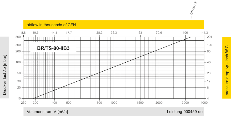 Diese Volumenstromdiagramme sind mit einer kalibrierten und TÜV-zertifizierten Strömungsmessanlage ermittelt worden. Der Volumenstrom V in m³/h bezieht sich auf den technischen Normzustand von Luft nach ISO 6358 (20°C, 1bar). Umrechnung auf andere Dichte und Temperatur siehe Kap. 1: Technische Grundlagen.