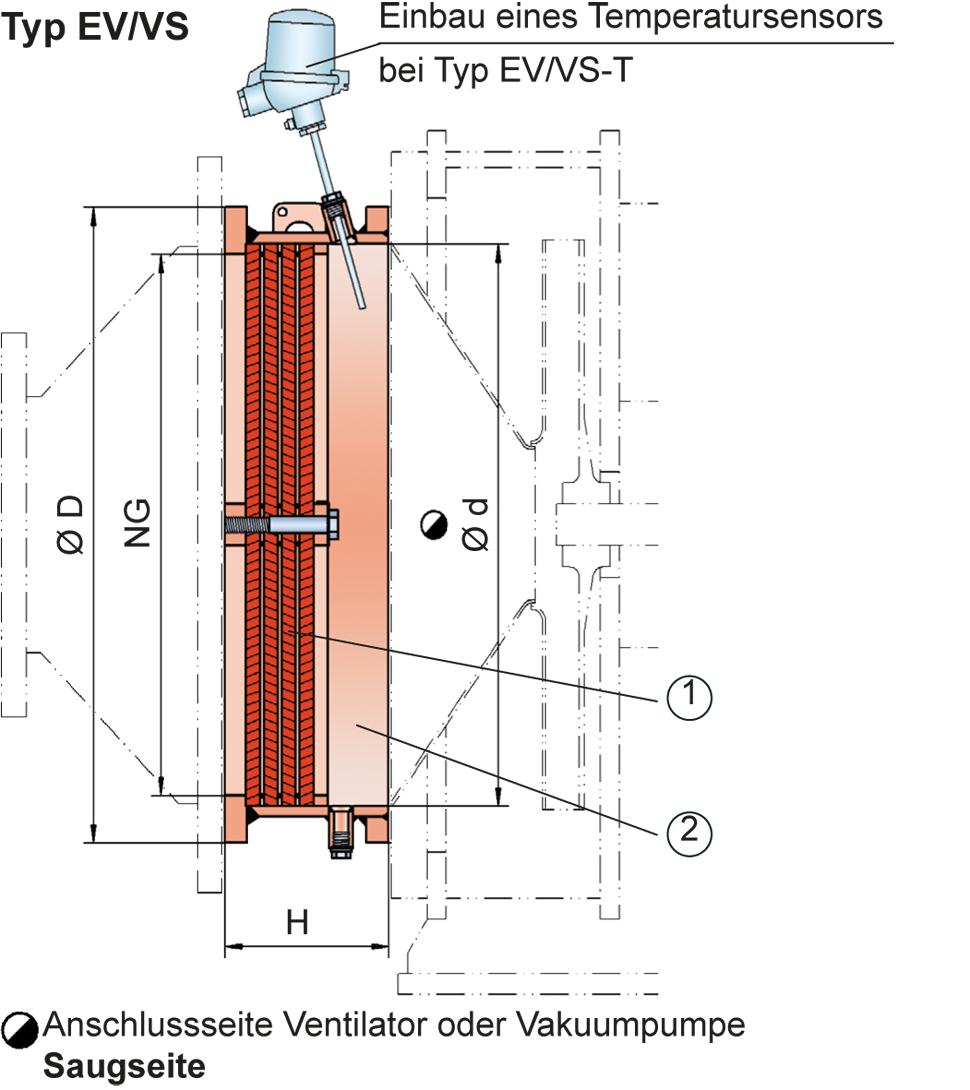 Es stehen vier Ausführungen zur Auswahl:Flammensicherung für die Saugseite in GrundausführungEV/VS –