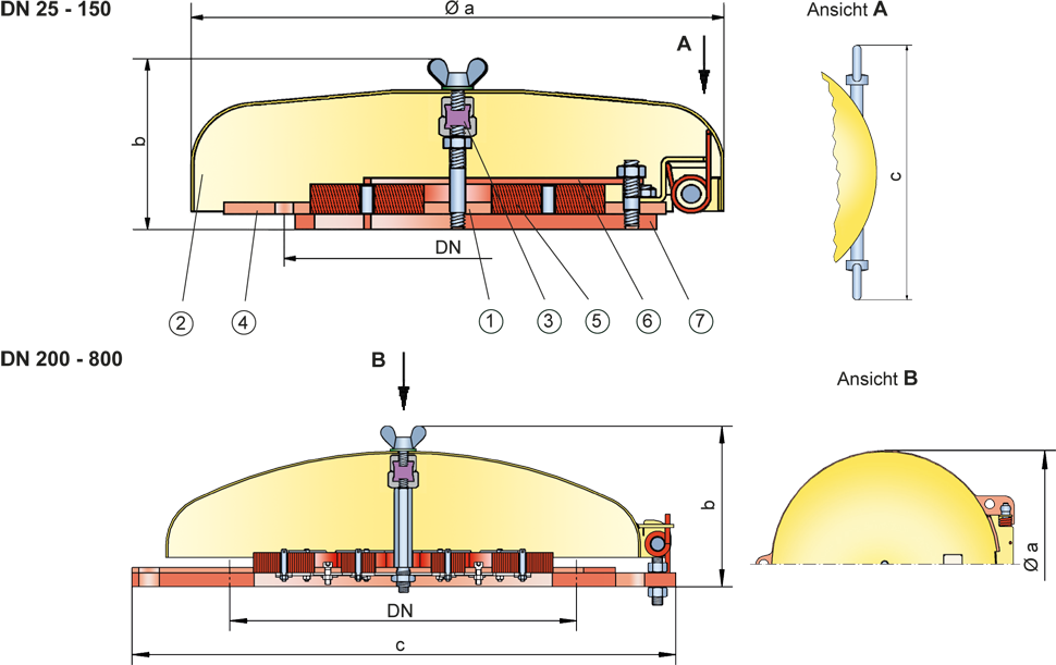 Maßtabelle DN 25 - 150 für EB-IIA und IIB