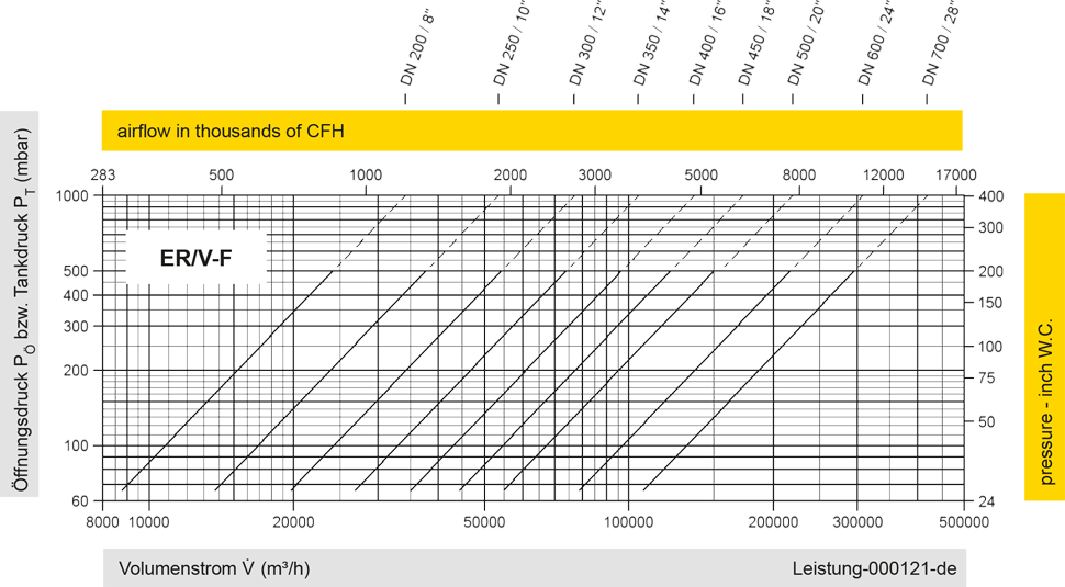 Höhere Druckeinstellungen auf Anfrage, niedrigere Druckeinstellungen siehe Typen ER-V-LP, ER/V und ER/VH.