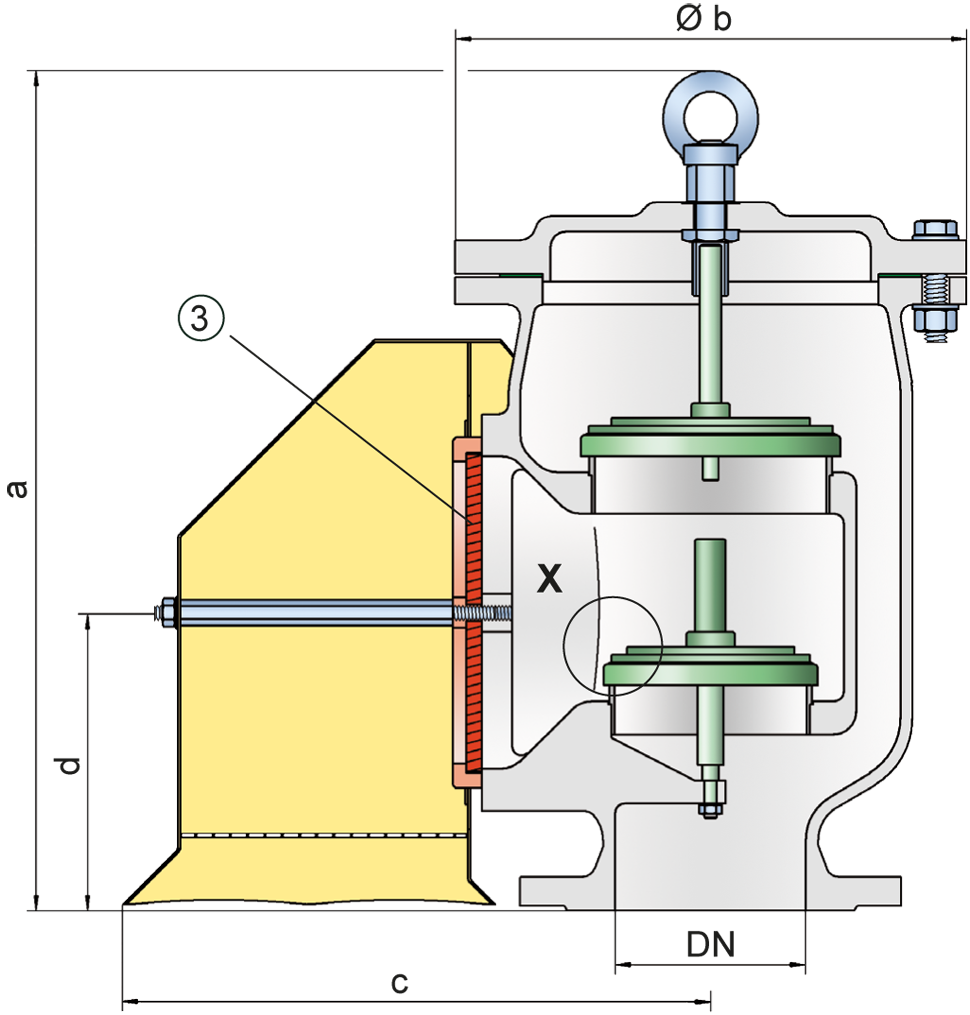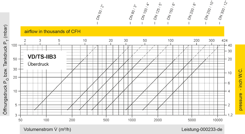Das Ventil ist in den Druckstufen für Überdruck und Unterdruck nahezu beliebig kombinierbar.Die Ventilteller sind gewichtsbelastet.