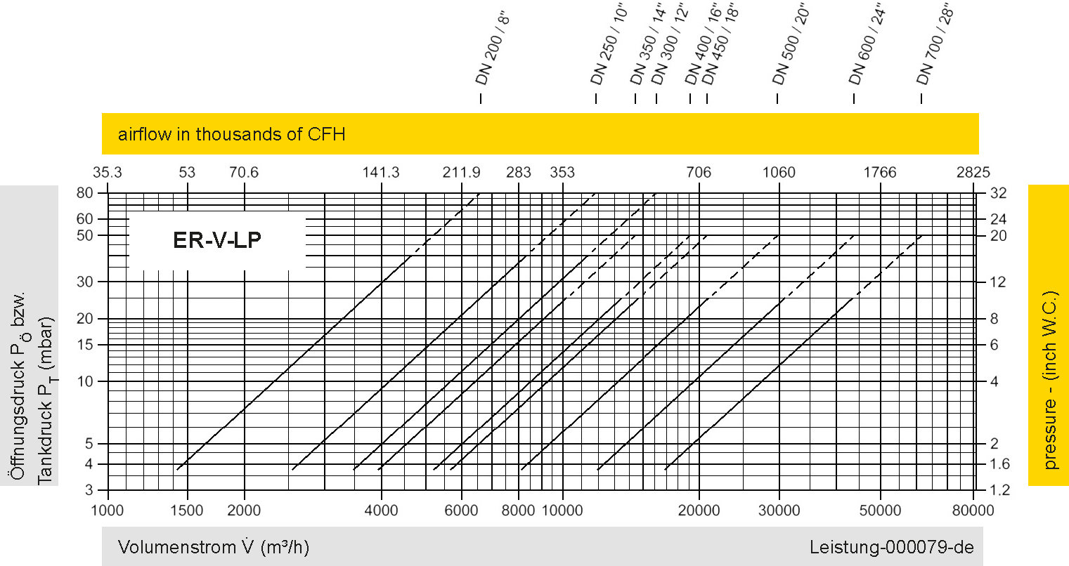 | DN 350 bis DN 700 | +3.4 mbar | +25 mbar |