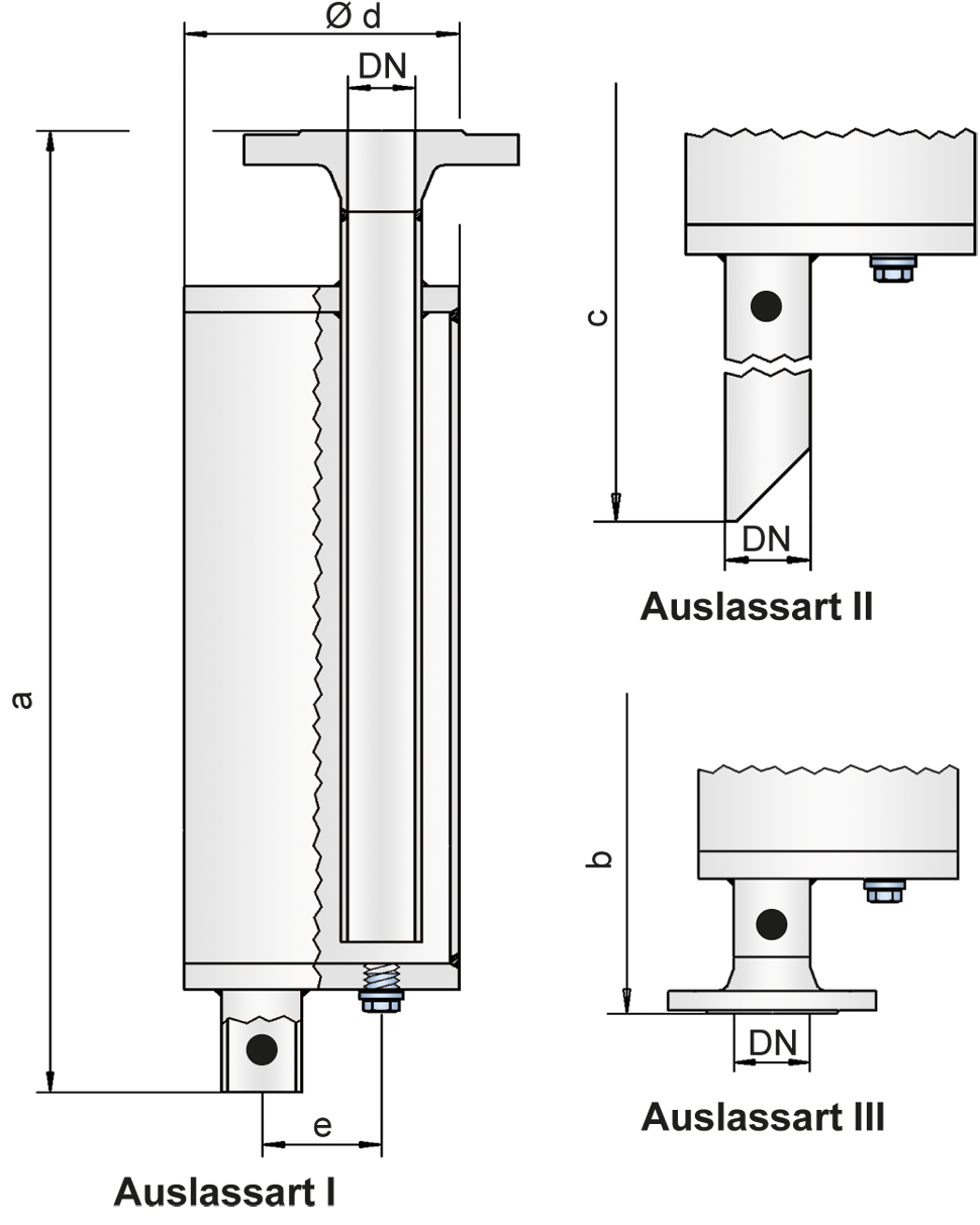 Unterschiedliche Auslaufstutzen