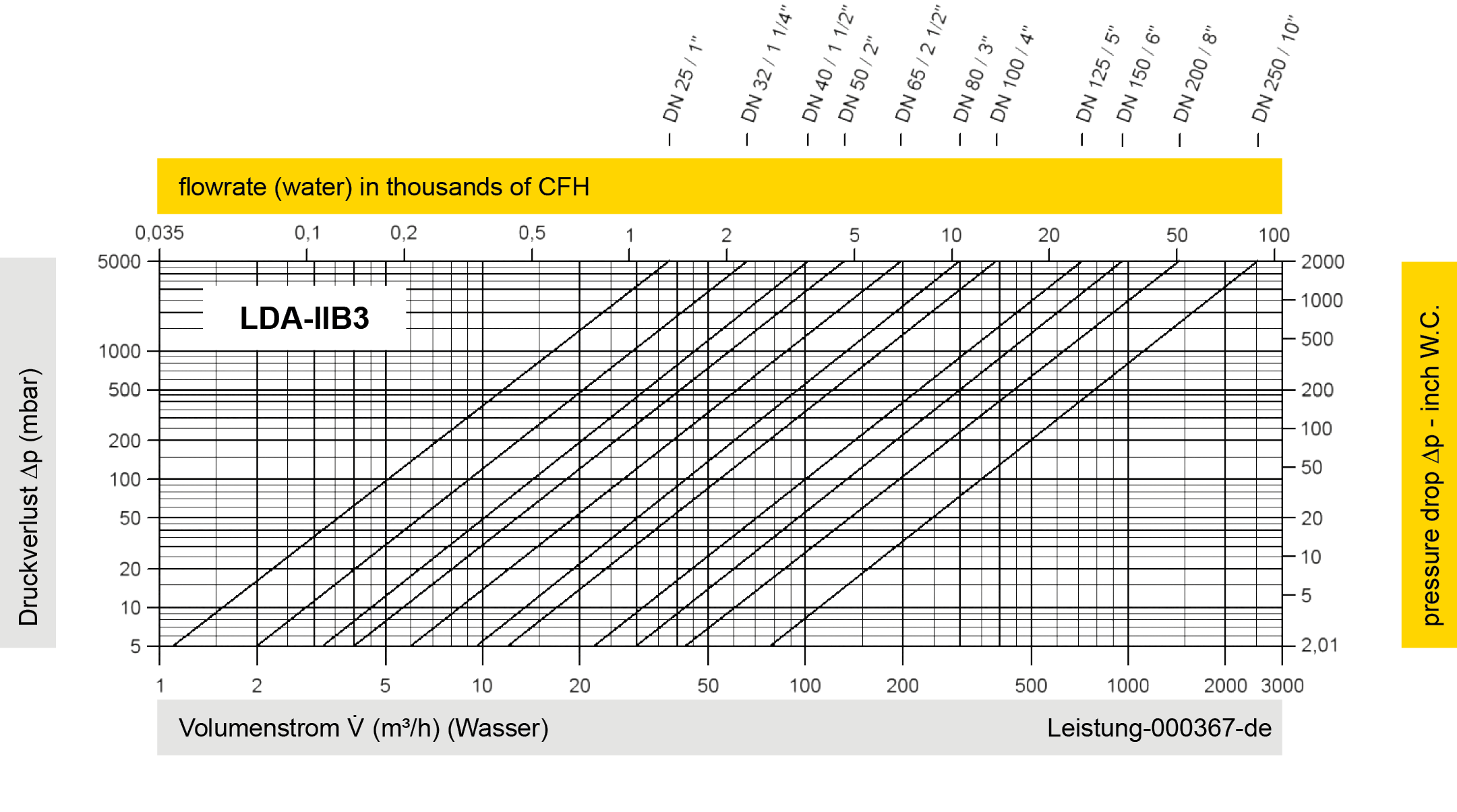 Zur Auswahl der Nennweite (DN) benutzen Sie bitte das Volumenstromdiagramm auf den folgenden Seiten