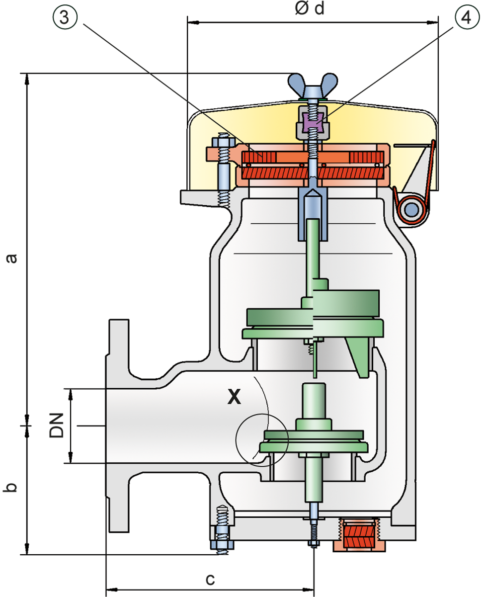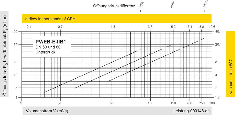 Das Ventil ist in den Druckstufen für Überdruck und Unterdruck nahezu beliebig kombinierbar. Die Ventilteller sind gewichtsbelastet. Bei Überschreitung einer Differenz zwischen Druck und Vakuum von 150 mbar kommen Sonder-Ventilteller zum Einsatz.Es stehen zwei Ausführungen zur Auswahl:
