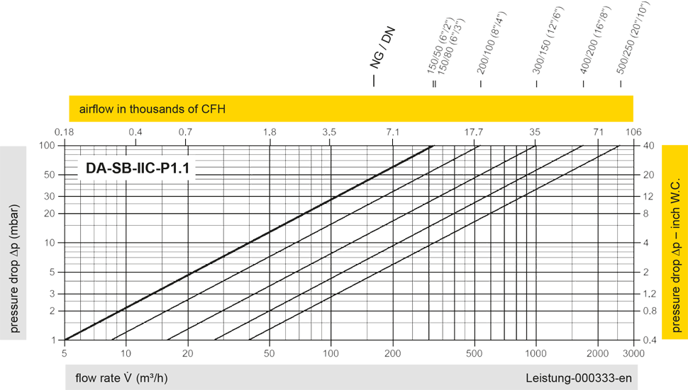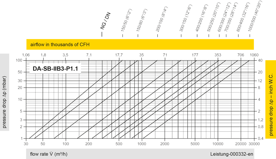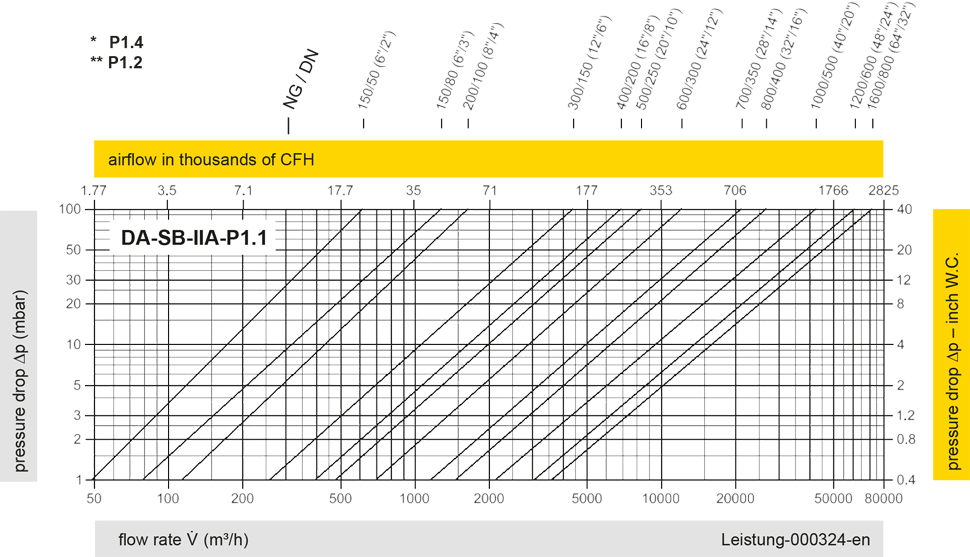 | IIB3-P1,1 | 400 / 15.75 | 412 / 16.22 | 500 / 19.69 | 650 / 25.59 | 724 / 28.50 | 824 / 32.44 | 1000 / 39.37 | 1200 / 47.24 | 1400 / 55.12 | 1600 / 62.99 | 1800 / 70.87 | ||