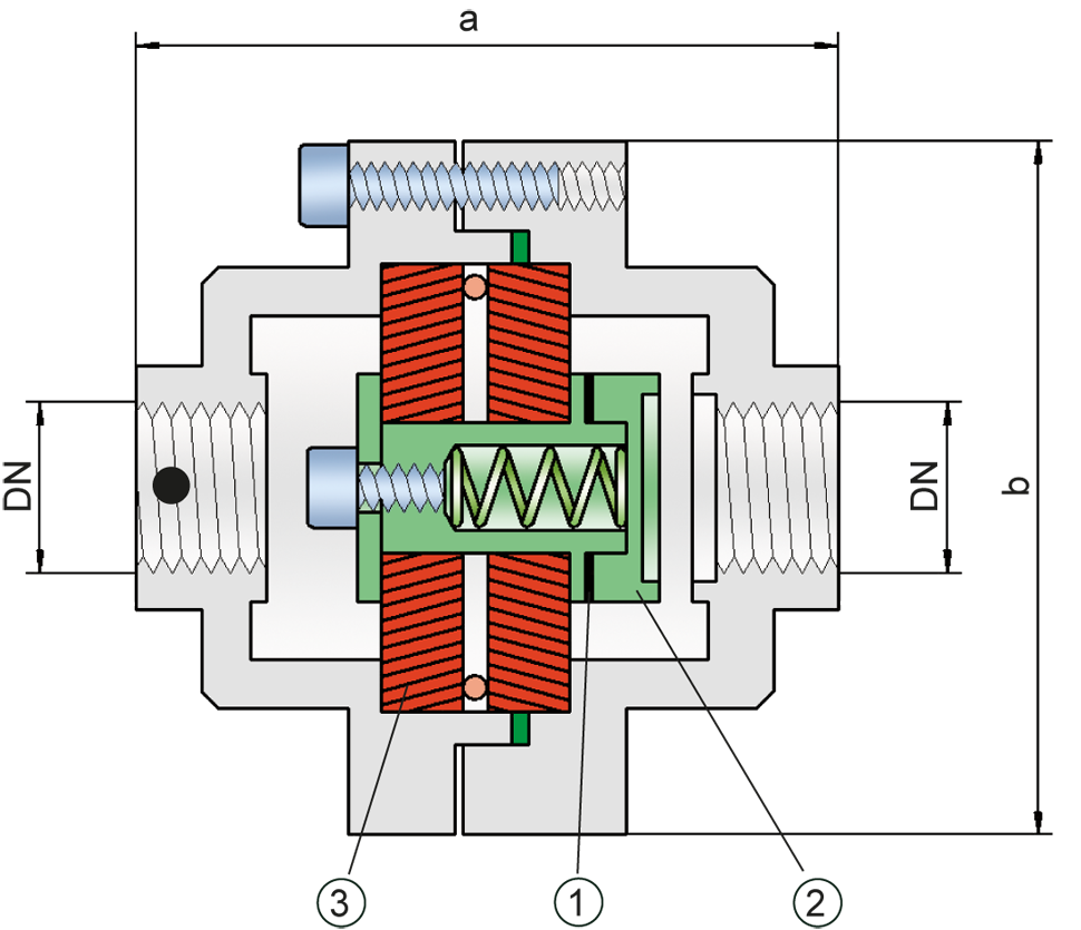 Detonationsrohrsicherungmit Nachströmsperre, für stabile Detonationen und Deflagrationen in Durchgangsausführung, einseitig wirkend