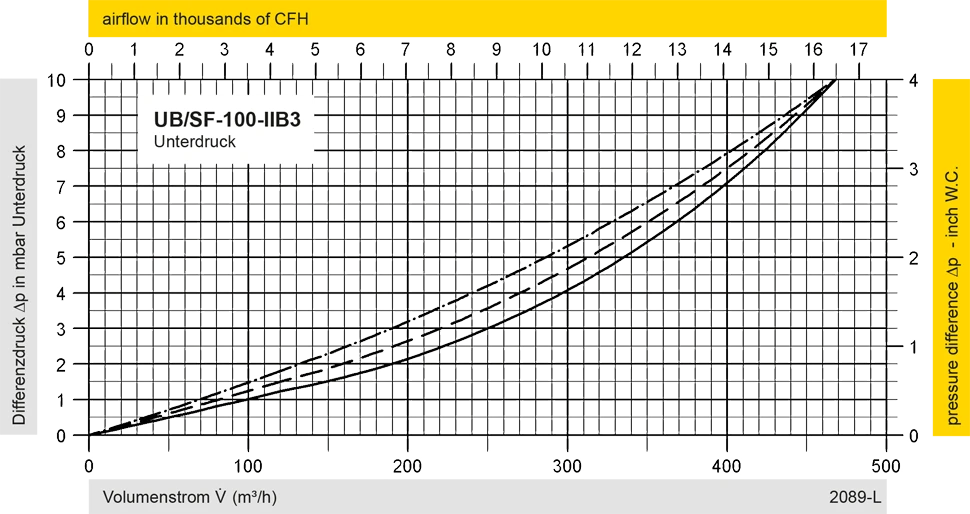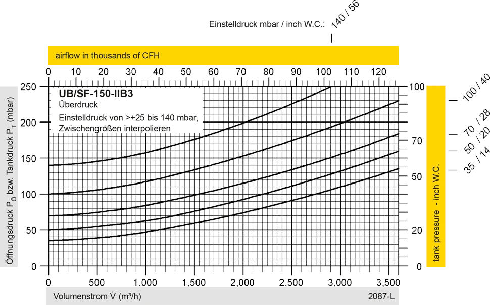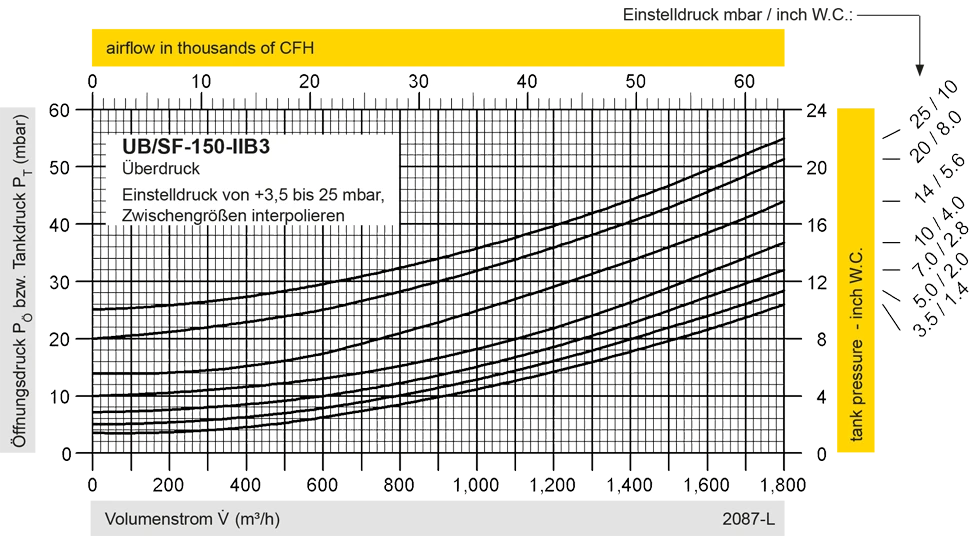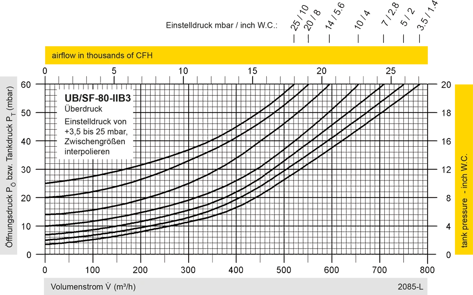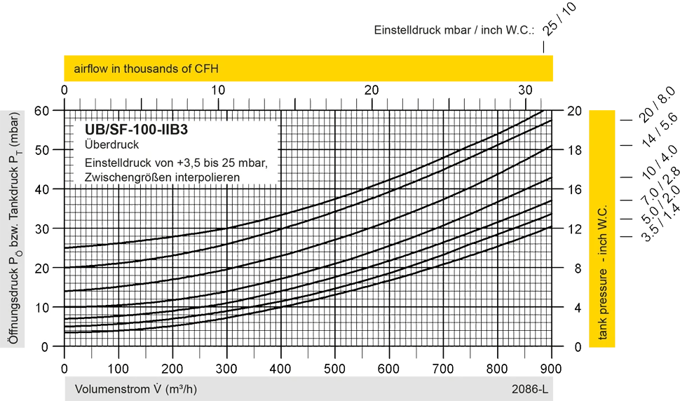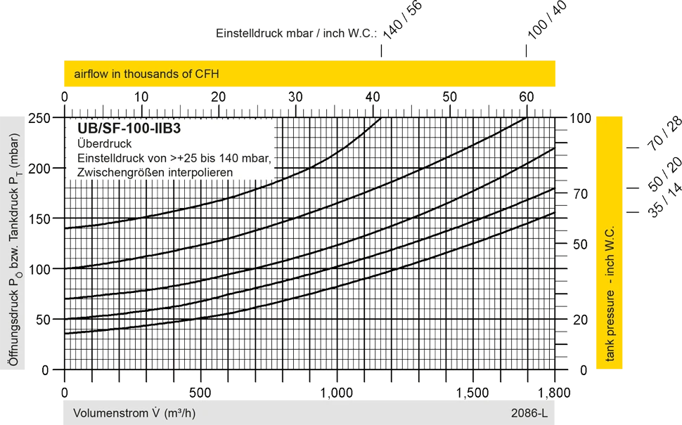 Höhere Druckeinstellungen bis zu 140 mbar in Sonderausführung mit Zusatzaufsatz sowie niedrigere Druckeinstellungen auf Anfrage. Höhere Unterdruckeinstellungen auf Anfrage