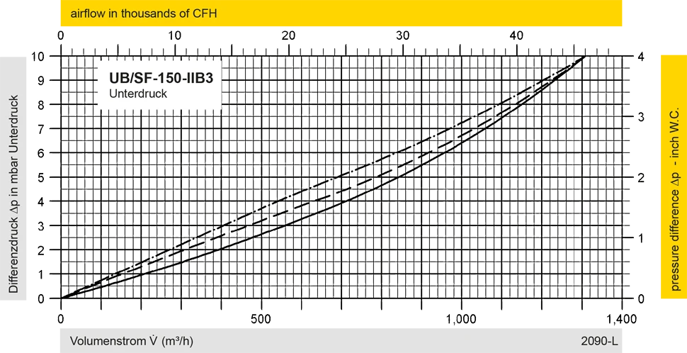Überdruckeinstellungen > +50 mbar (DN 80), > +45 (DN 100), > +46 (DN150) mit Zusatzaufsatz - Baumaße auf Anfrage