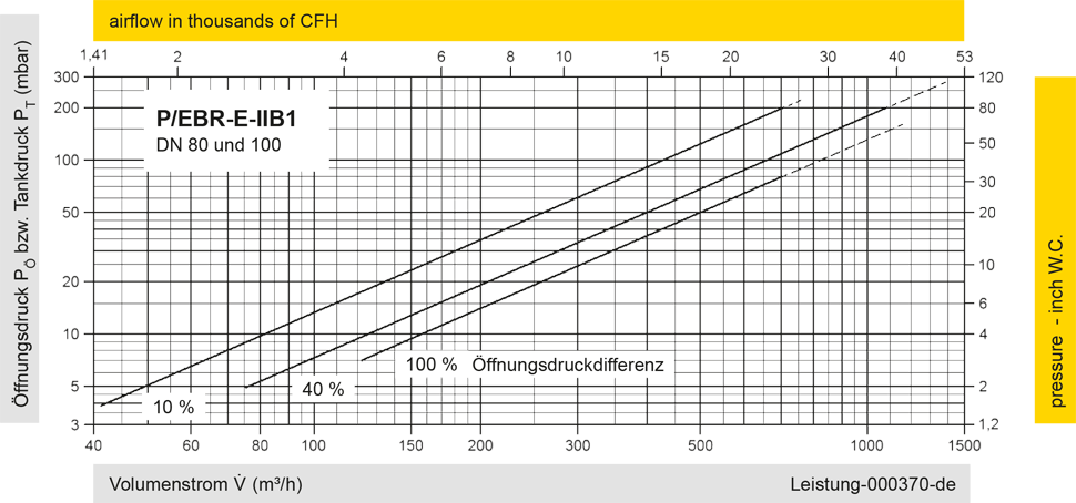 Diese Volumenstromdiagramme sind mit einer kalibrierten und TÜV-zertifizierten Strömungsmessanlage ermittelt worden. Der Volumenstrom V in m³/h bezieht sich auf den technischen Normzustand von Luft nach ISO 6358 (20°C, 1bar). Umrechnung auf andere Dichte und Temperatur siehe Kap. 1: Technische Grundlagen.