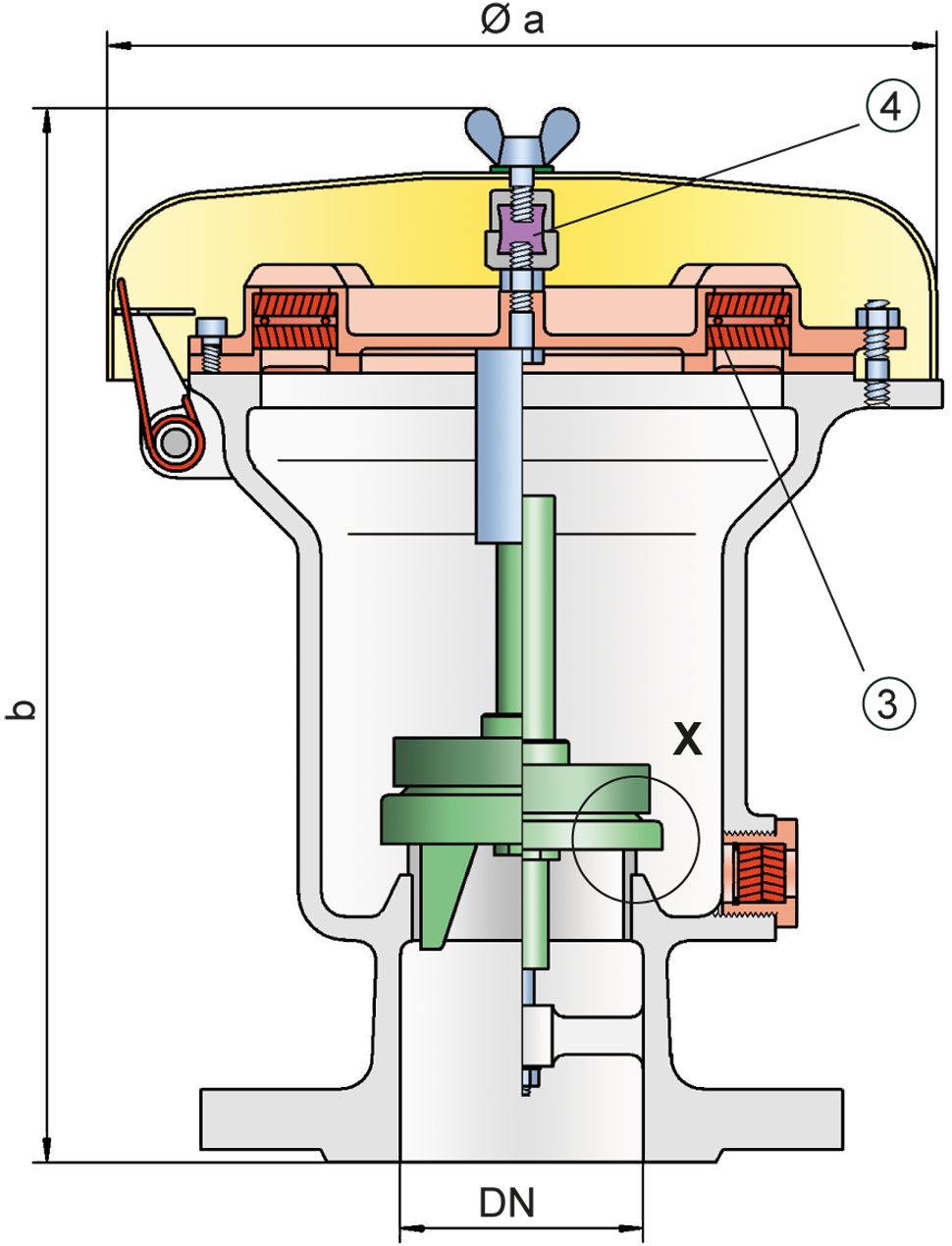 Baumaße für das Überdruckventil mit Heizmantel auf Anfrage