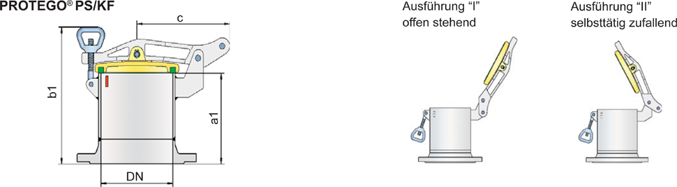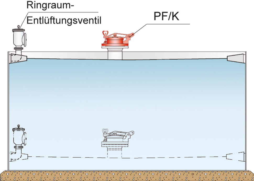 Die Peil- und Probeentnahmestutzen PROTEGO® PF/K, PF/TK und PS/KF dienen als verschließbare Peilöffnungen, die nur zum Peilen oder zur Entnahme von Proben geöffnet werden. Ansonssten sind sie fest verschlossen.