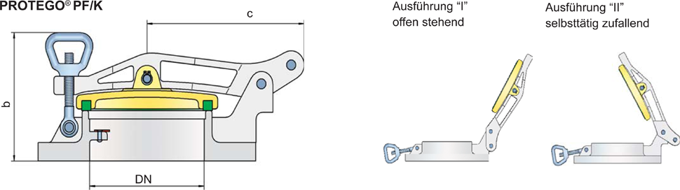 Die Peilstutzen PF/K, PF/TK und PS/KF bestehen im Wesentlichen aus Gehäuse, Peilstutzendeckel mit Dichtung und Peilstutzenbügel. Die Gehäuse sind standardmäßig mit Peilmarken aus Edelstahl versehen.