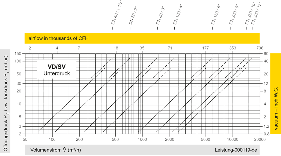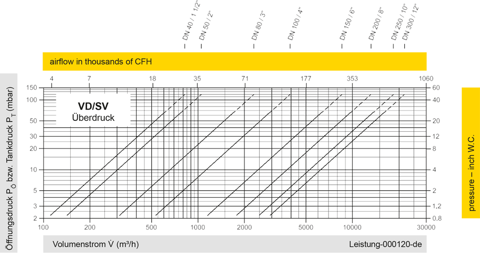 Das Ventil ist in den Druckstufen für Über- und Unterdruck nahezu beliebig kombinierbar. Bei Überschreitung einer Differenz zwischen Druck und Vakuum von 150 mbar kommen Sonderventilteller zum Einsatz.