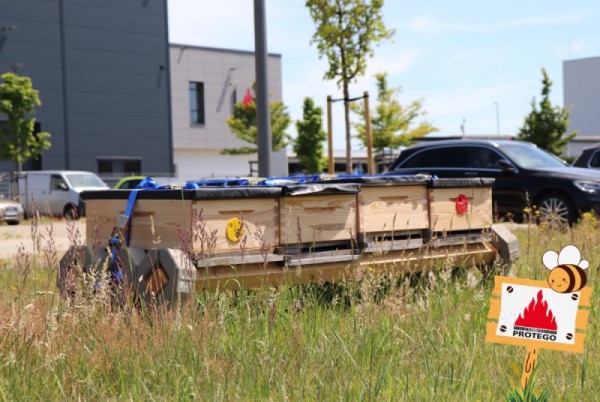 Thanks to the Salubria Honigmanufaktur (= honey manufactory), there are now a total of four Bee Boxes standing on the premises of the PROTEGO® Technology Center.