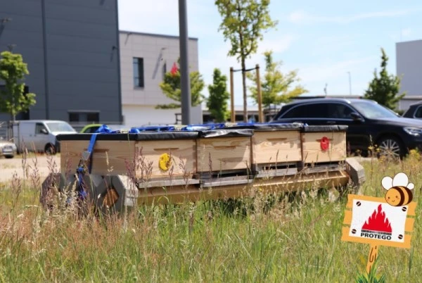 Gracias a Salubria Honigmanufaktur (= fábrica de miel), ahora hay un total de cuatro colmenas en las instalaciones del Centro Tecnológico PROTEGO®.