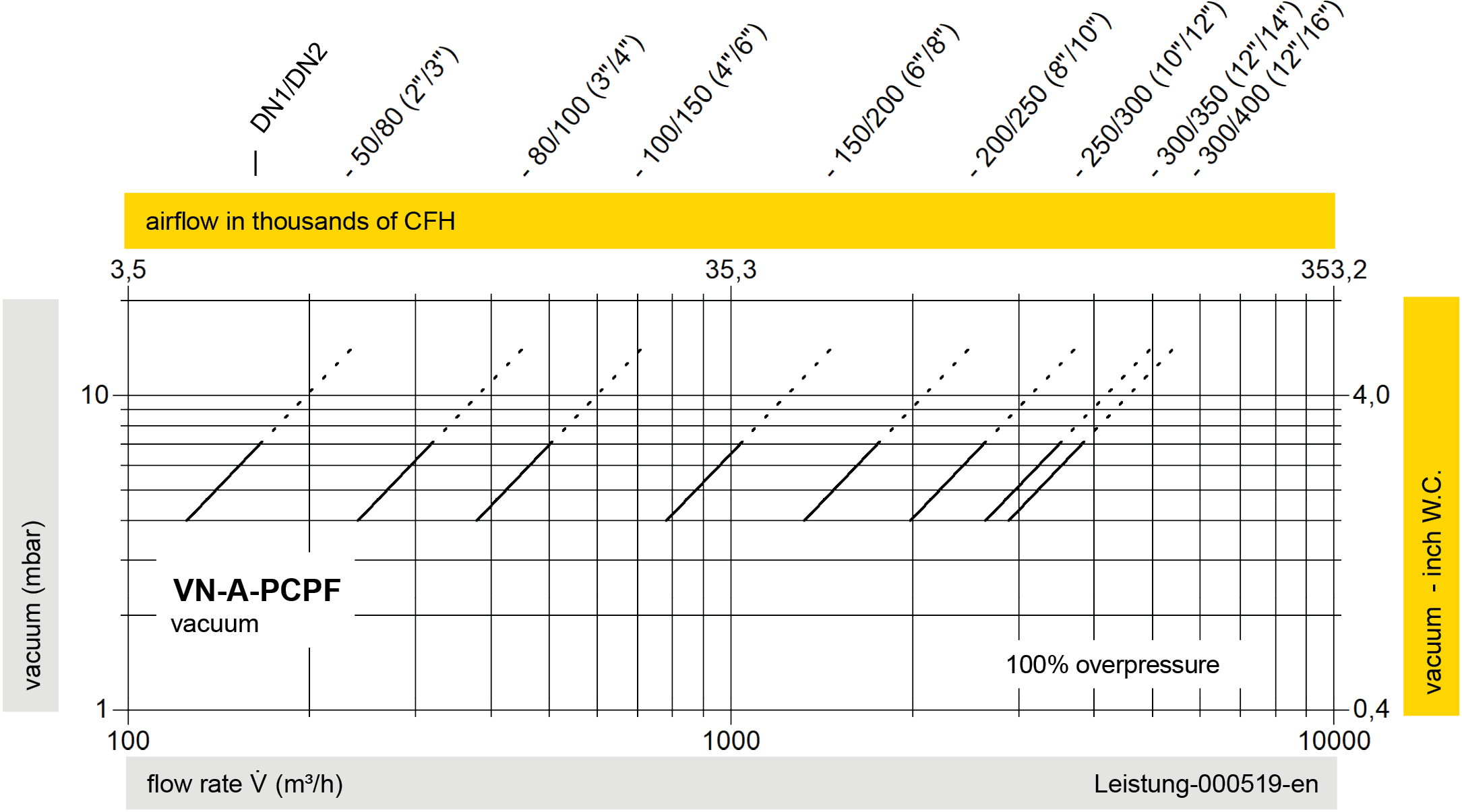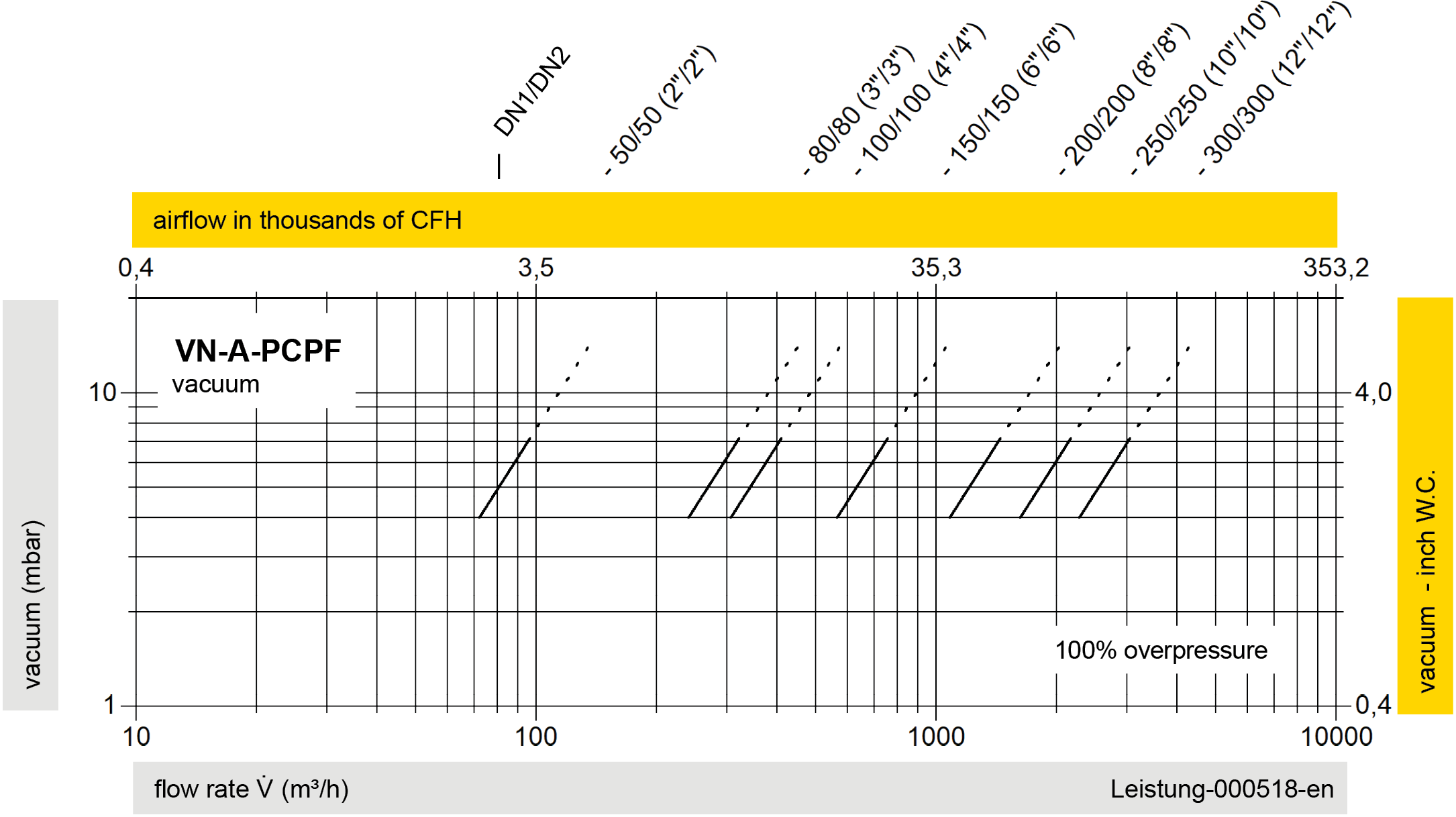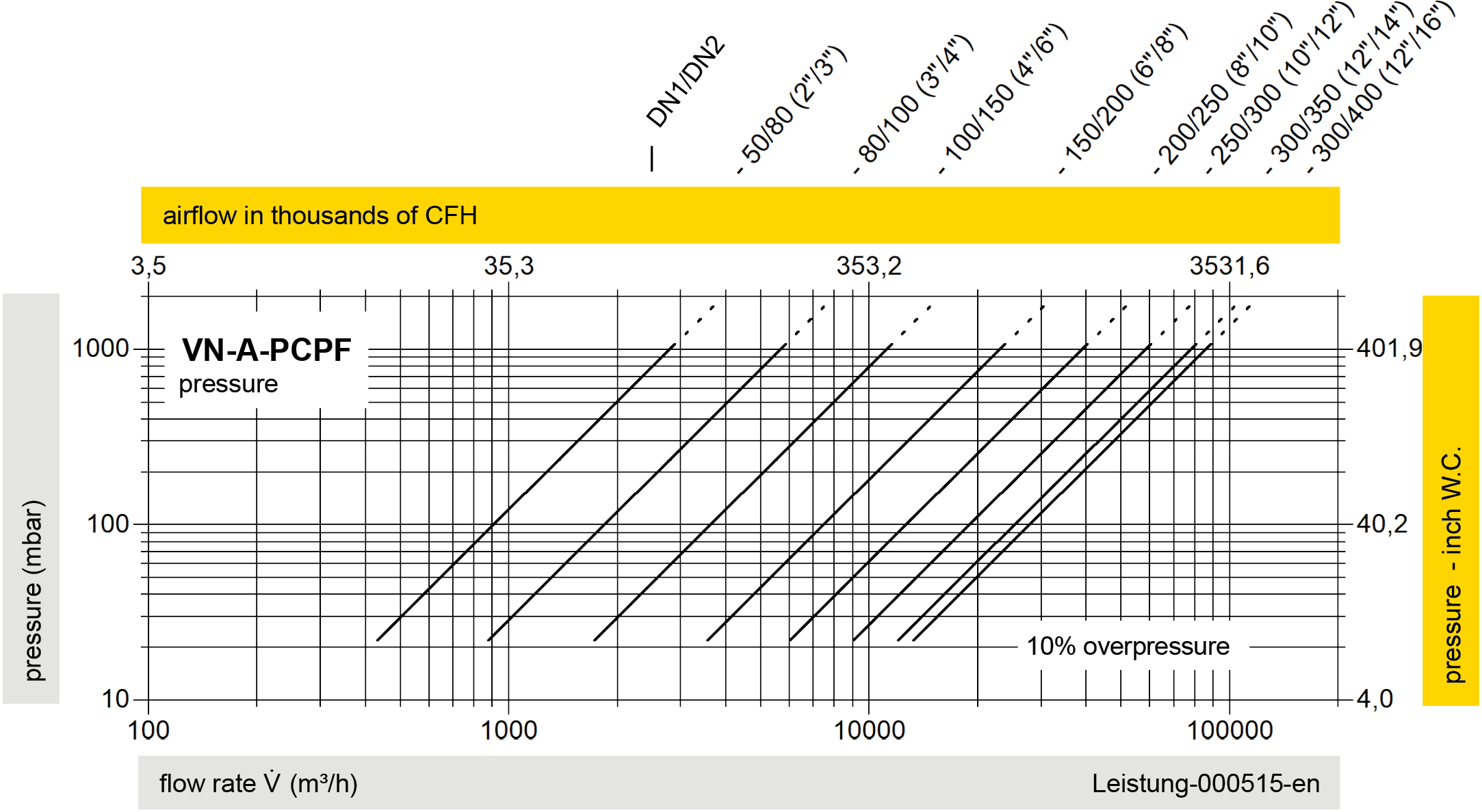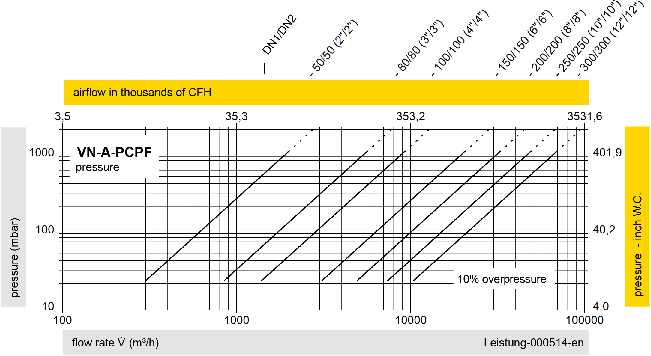 The flow capacity charts have been determined with a calibrated and TÜV certified flow capacity test rig. Volume flow V in (m³/h) and CFH refer to the standard reference conditions of air ISO 6358 (20°C, 1bar). For conversion to other densities and temperatures refer to Sec. 1: “Technical Fundamentals”.
