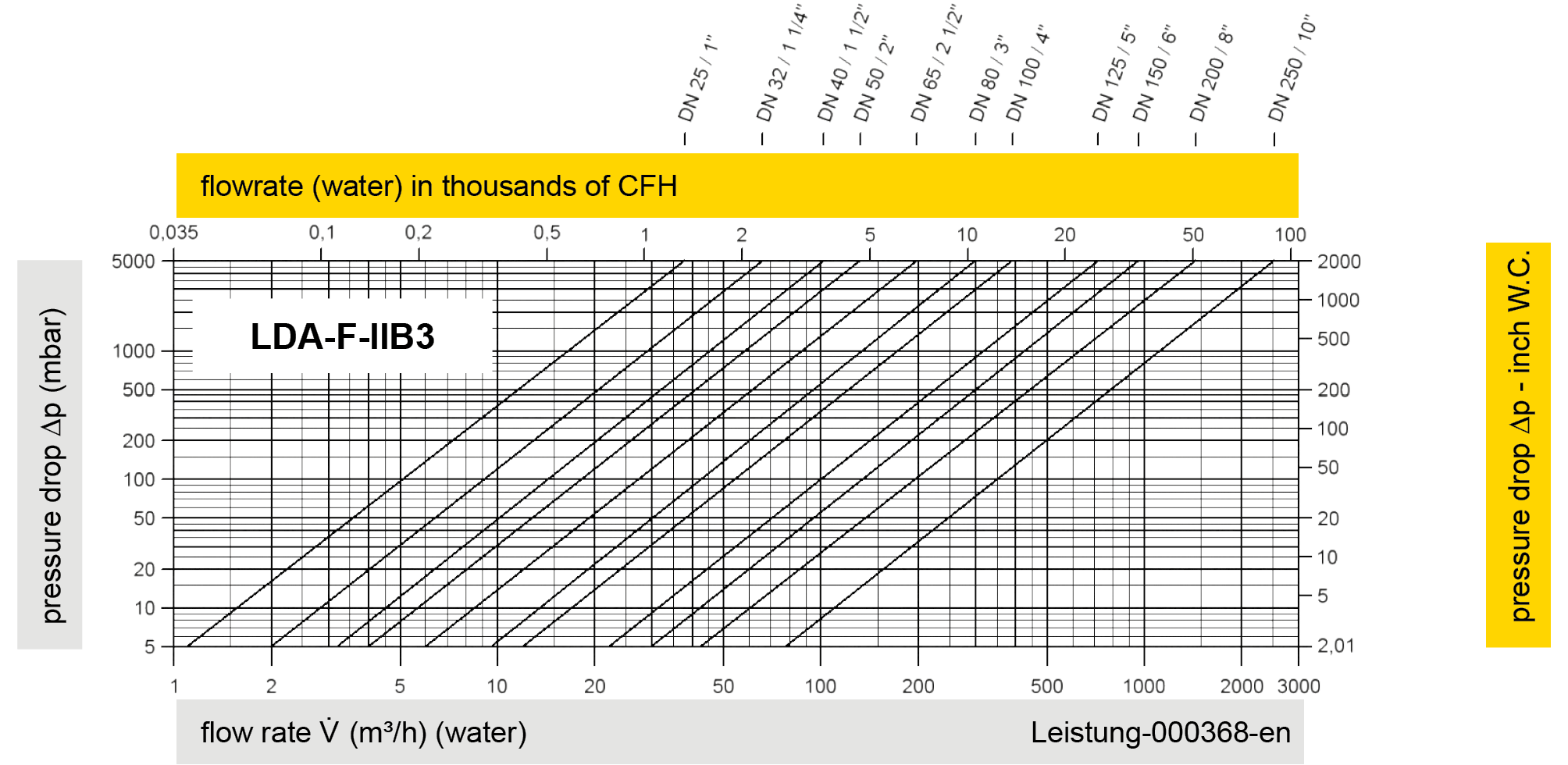 To select the nominal size Nominal size The nominal size is an alphanumeric designation of size for components in a piping system, used for reference purposes, comprising the letters DN followed by a dimensionless integer that is indirectly related to the physical size of the bore or outside diameter of the connections, expessed in millimeters. (DN), please use the flow capacity chart on the following pages