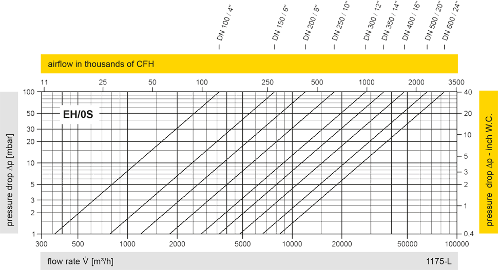 The flow capacity charts have been determined with a calibrated and TÜV certified flow capacity test rig. Volume flow V in (m³/h) and CFH refer to the standard reference conditions of air ISO 6358 (20°C, 1bar). For conversion to other densities and temperatures refer to Sec. 1: “Technical Fundamentals”.
