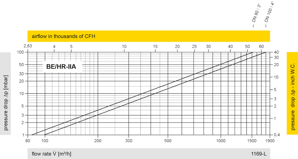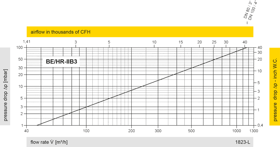 The flow capacity charts have been determined with a calibrated and TÜV certified flow capacity test rig. Volume flow V in (m³/h) and CFH refer to the standard reference conditions of air ISO 6358 (20°C, 1bar). For conversion to other densities and temperatures refer to Sec. 1: “Technical Fundamentals”.