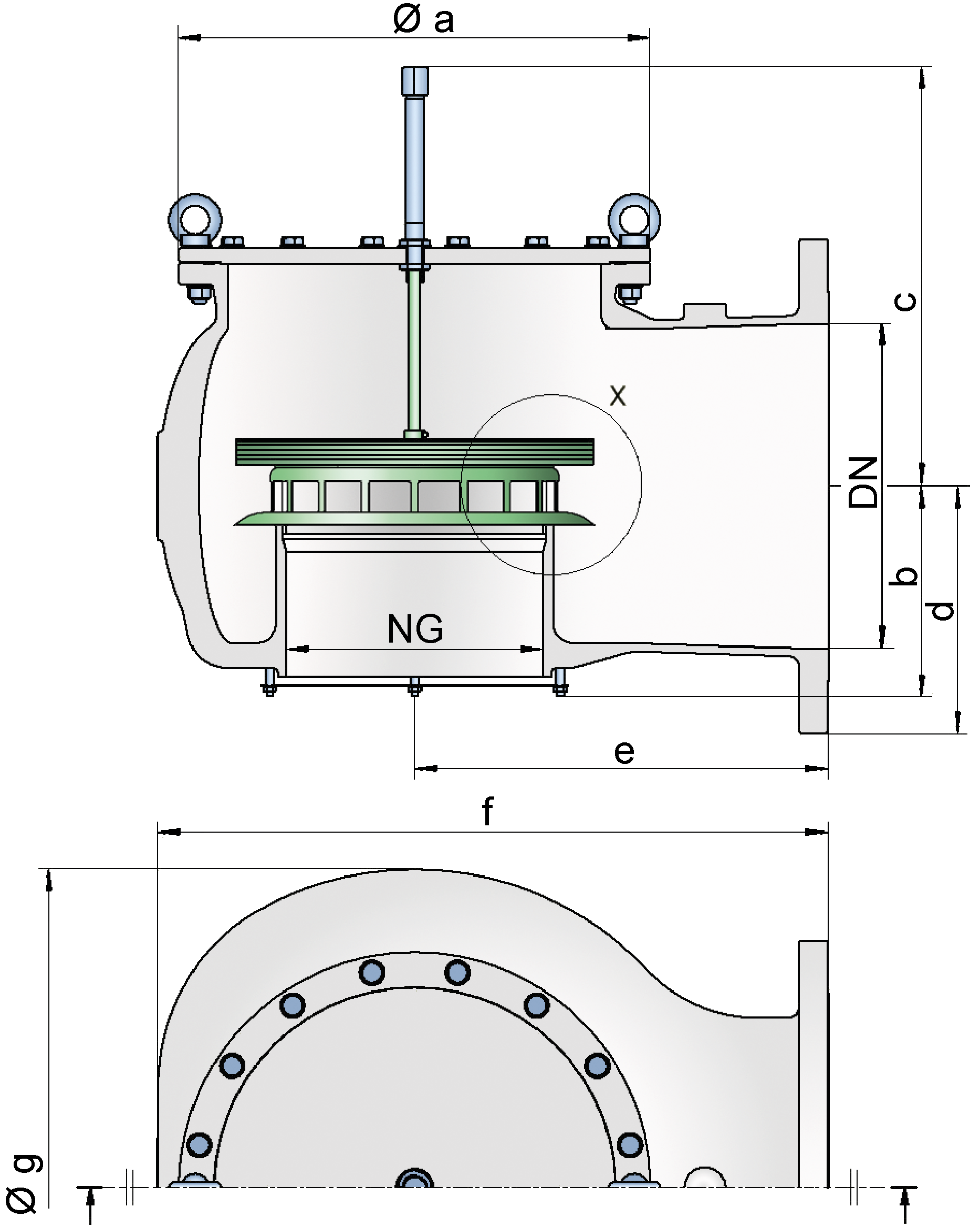 The valve pallet is weight-loaded.Additional special devices available upon request.