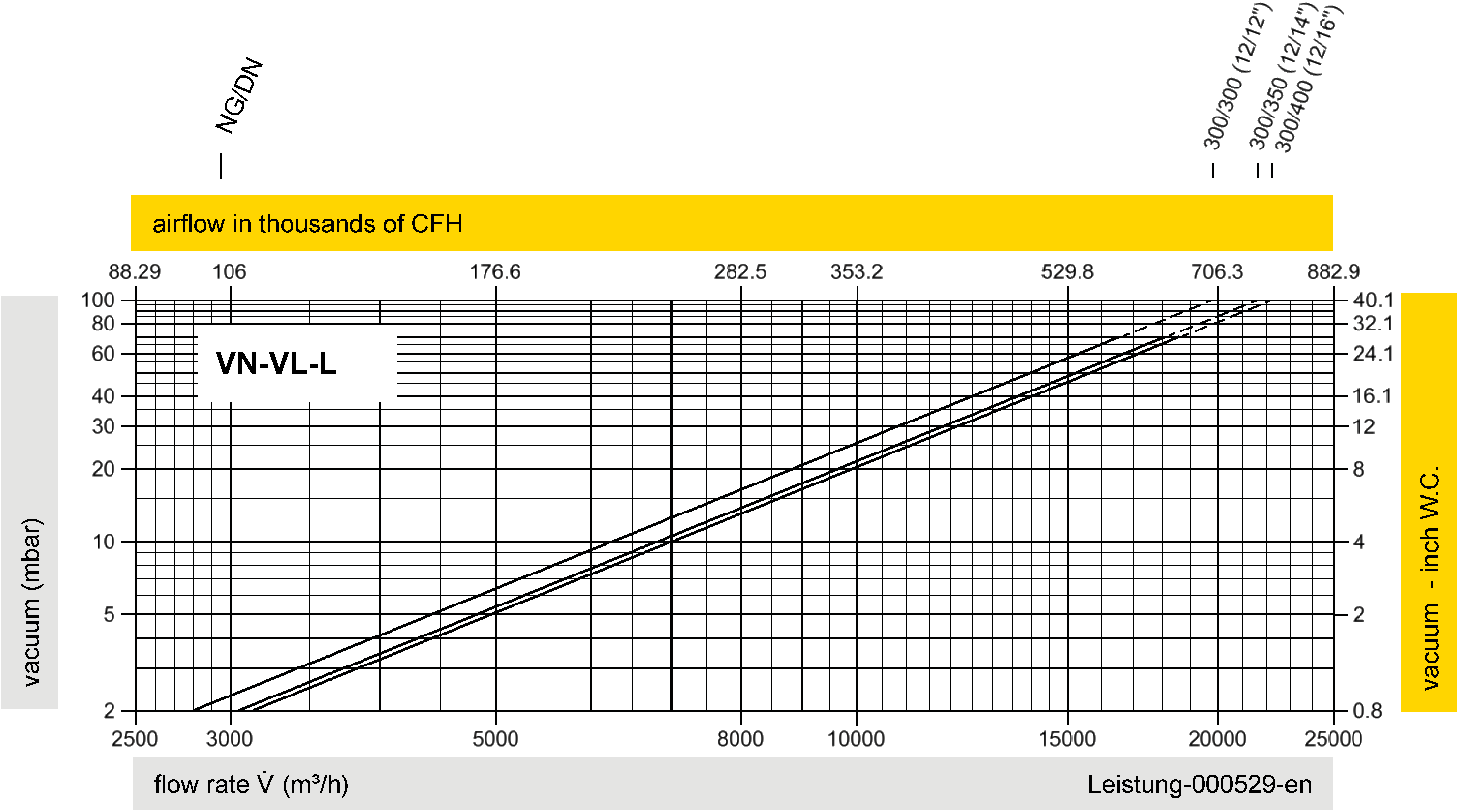 | vacuum range [mbar] [inch W.C.] | -2.7 up to -4.6 -1.08 up to -1.84 | -4.6 up to -7.9 -1.84 up to 3.16 | -7.9 up to -13.5 -3.16 up to -5.4 | -13.5 up to -70 -5.4 up to -28 |