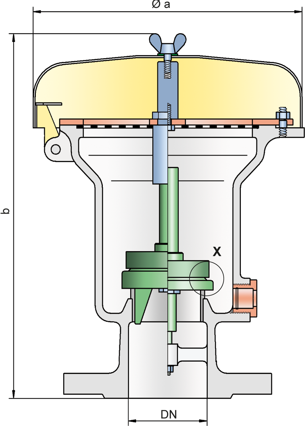 Dimensions for pressure valves with heating jacket upon request