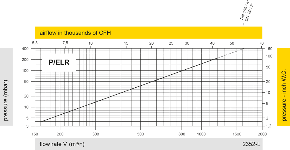 | Pressure range [mbar] [inch W.C.] | +3,5 up to +5,0 +1.4 up to +2.0 | >+5,0 up to +14 >+1.4 up to 5.6 | >+14 up to +210 >+5.6 up to +84 | >+14 up to +210 >+5.6 up to +84 |