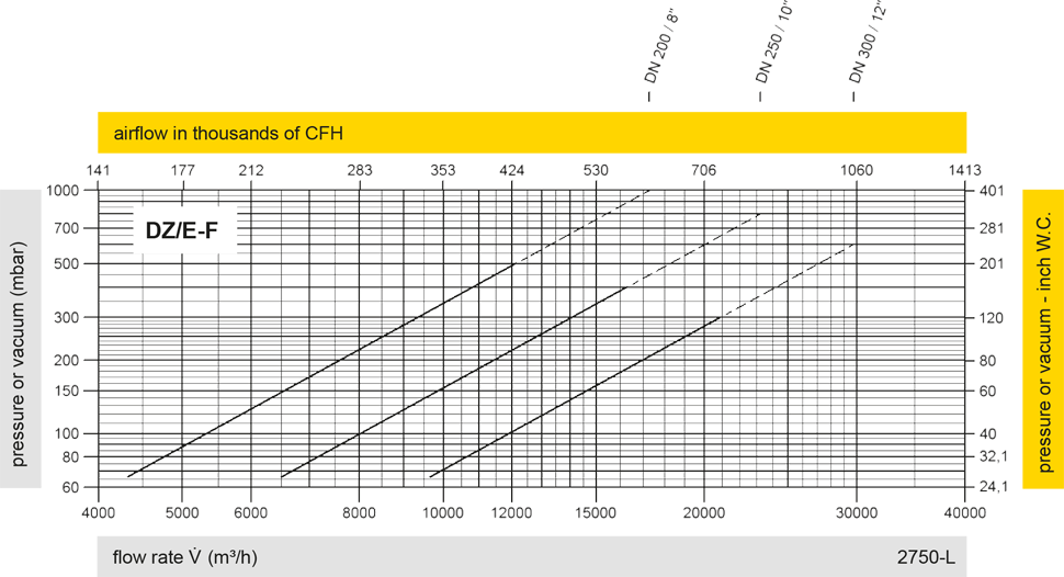 Devices with higher set pressure or vacuum are available upon request, for lower set pressures or vacuum refer to type DZ/E.