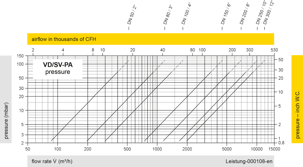 | Pressure range [mbar] [inch W.C.] | -2,0 up to -3,5 -0.8 up to -1.4 | <-3,5 up to -14 <-1.4 up to -5.6 | <-14 up to -35 <-5.6 up to -14 | <-14 up to -35 <-5.6up to -14 | <-35 up to -60 <-14 up to -24 | <-35 up to -60 <-14 up to -24 |