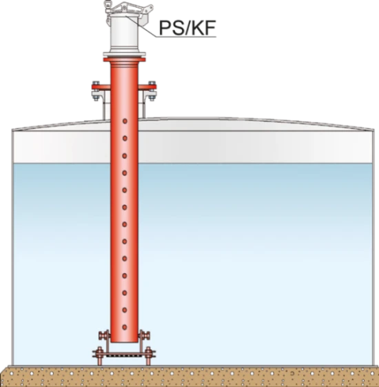 Gauging and Sampling PIpe PROTEGO® PR/0 with gauging table PROTEGO® PS/KF for a vertical tank. Also sampling with a suitable Sampling Pot PROTEGO® PG/H is possible. Information about gauging and sampling device Gauging and sampling device A gauging and sampling device is used for gauging the fluid level of storage tanks as well as for sampling from different levels within the stored medium. are available in a seperate catalogue sheet.