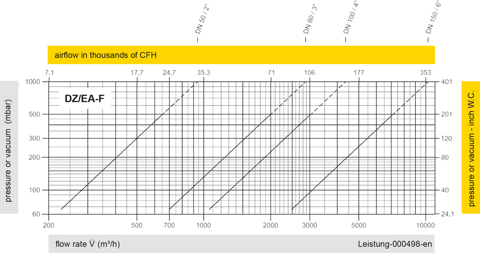 Devices with higher set pressure or vacuum are available upon request, for lower set pressure or vacuum refer to type DZ/EA