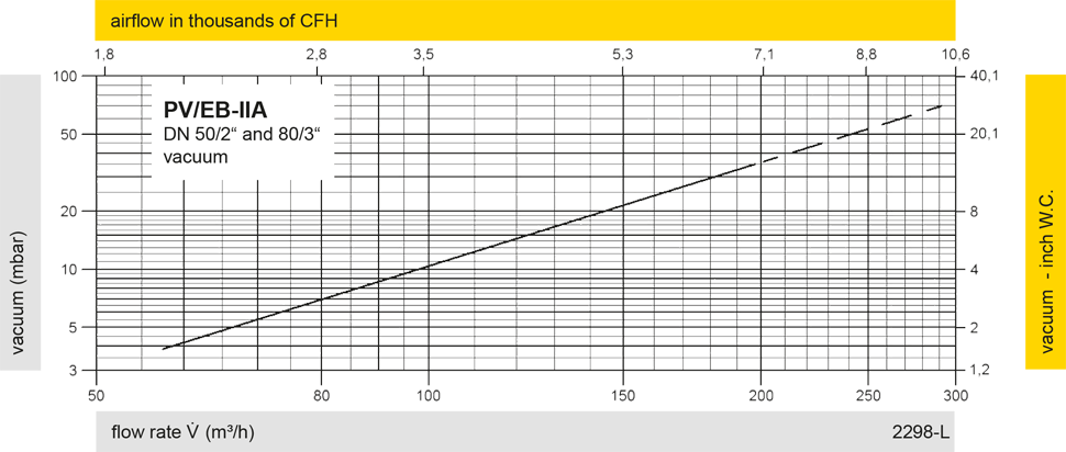 | Vacuum range [mbar] [inch W.C.] | -3.5 up to -5.0 -1.4 up to -2.0 | <-5.0 up to -14 <-2.0 up to -5.6 | <-14 up to -35 <-5.6 up to -14 | <-14 up to -35 <-5.6 up to -14 |