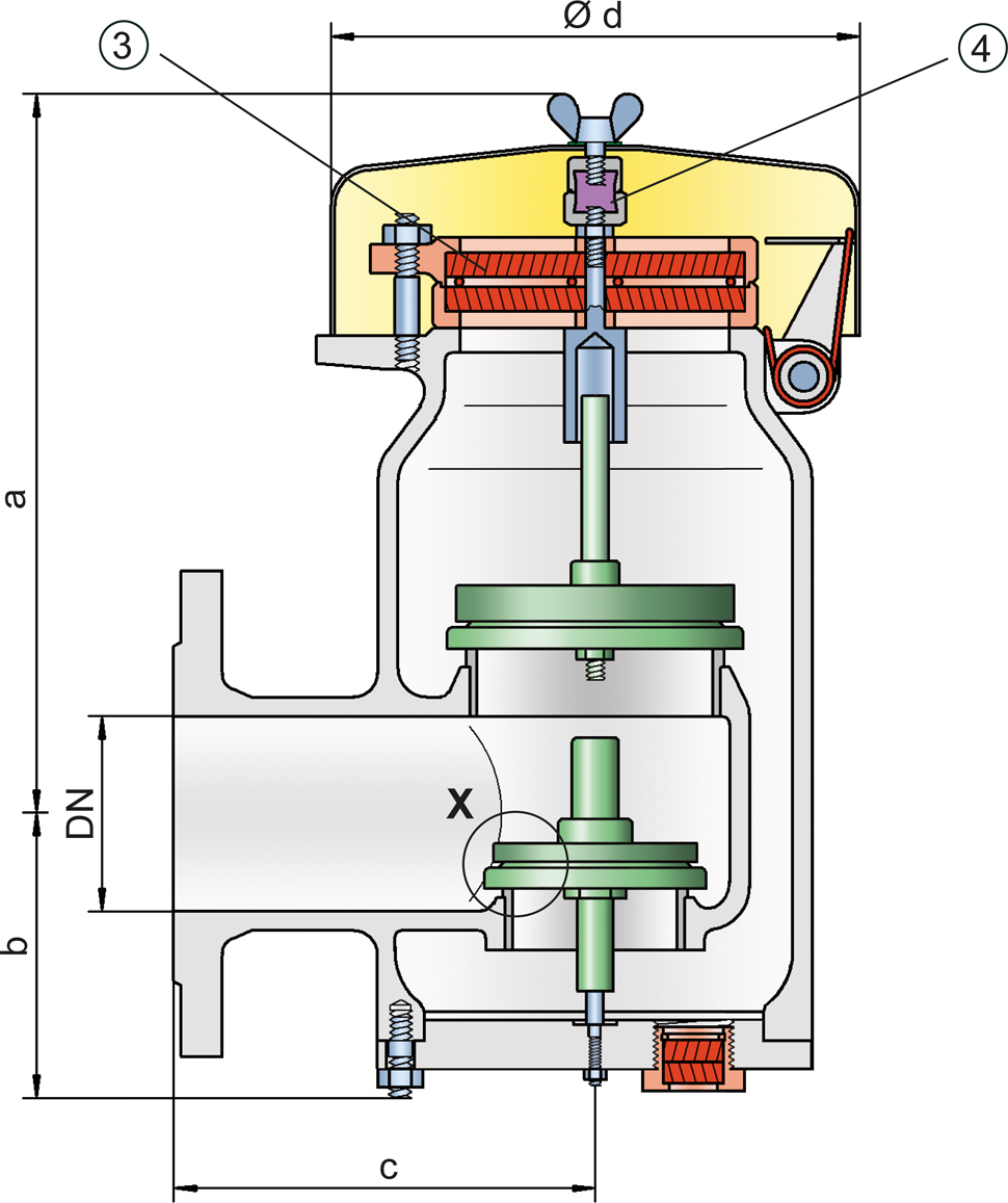 Dimensions for pressure/ vacuum relief valve Vacuum relief valve A vacuum relief valve is used to ventilate a part of the system and protects it from impermissible underpressure. with heating jacket upon request