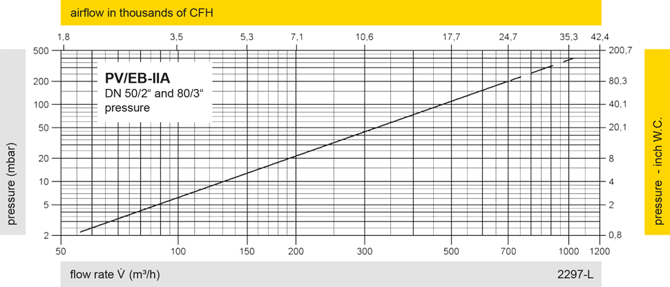 The flow capacity charts have been determined with a calibrated and TÜV certified flow capacity test rig. Volume flow V in (m³/h) and CFH refer to the standard reference conditions of air ISO 6358 (20°C, 1bar). For conversion to other densities and temperatures refer to Sec. 1: “Technical Fundamentals”.