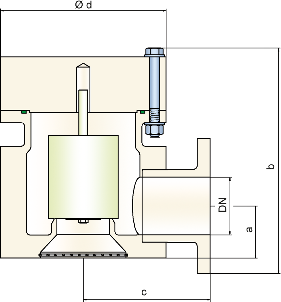 The valve pallet is weight-loaded, and the highest pressure levels are only attained with metal discs.Additional special devices available upon request.