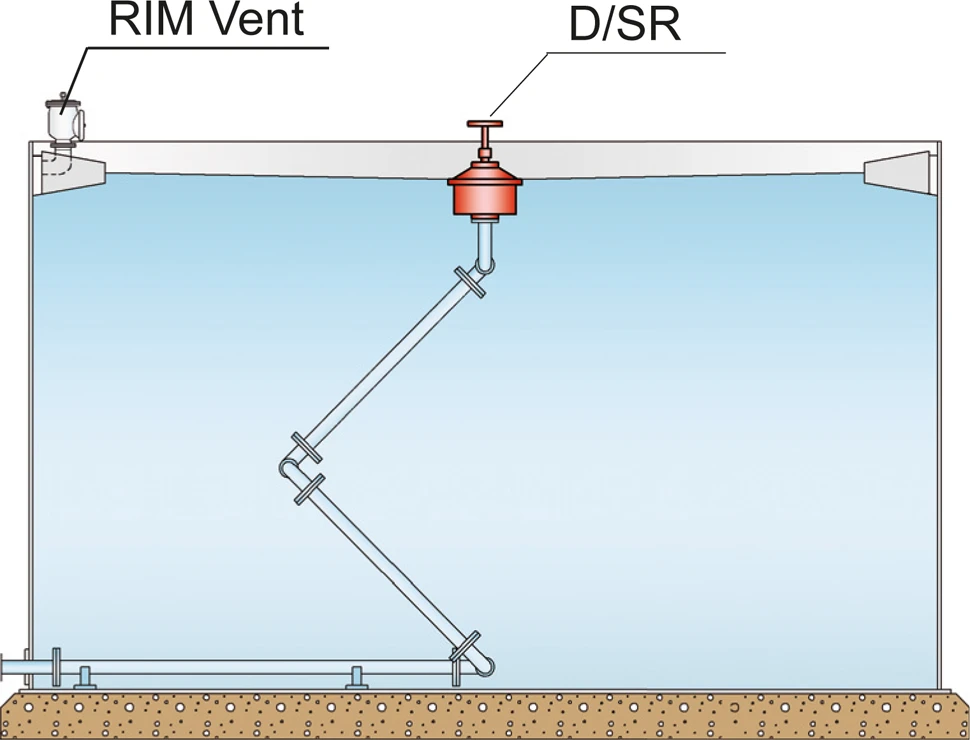Na posição de operação normal, a válvula de teto está aberta. Em caso de eventuais vazamentos, a portinhola de retenção impede a saída do fluido de armazenamento para o teto flutuante. A peneira de entrada protege a válvula de teto contra sujeira grossa, folhas e também de ninhos de pássaros.